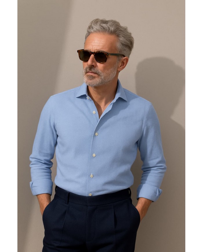 Angelo Ricci – Chemise Homme en twill Italien,coupe regular fit – Bleu