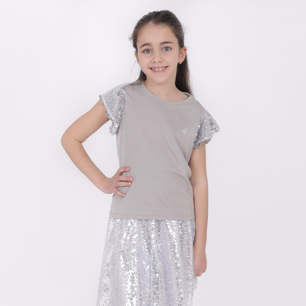 KONTAKT – T-shirt fille avec volant en tulle – Gris — ابتداءً من 0,399 د.ت. | هوّيني | هوّيني