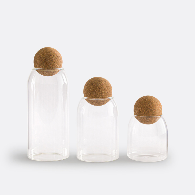 NEST – Lot de 3 bocaux de rangement en verre avec couvercle boule en liège