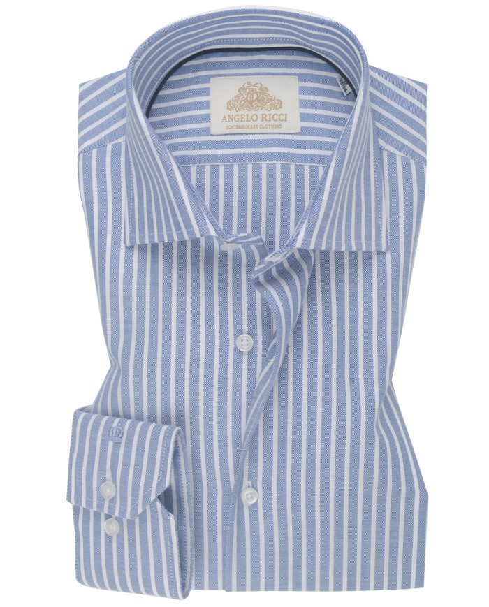 Angelo Ricci – Chemise Homme Angelo Ricci Regular Fit en Popeline Rayée – Bleu Foncé et Blanc