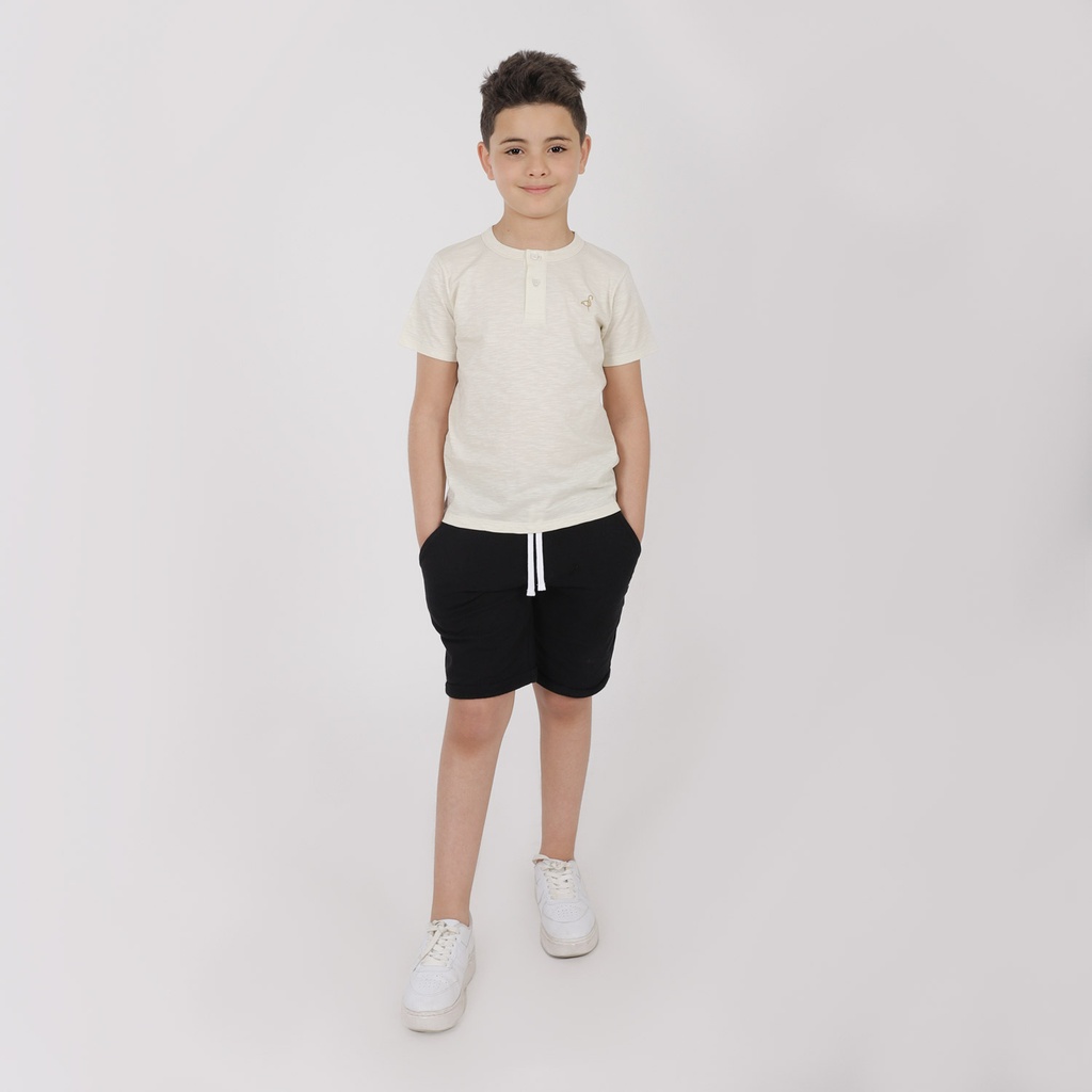 Kontakt Enfant – T-shirt garçon manches courtes col tunisien – Beige