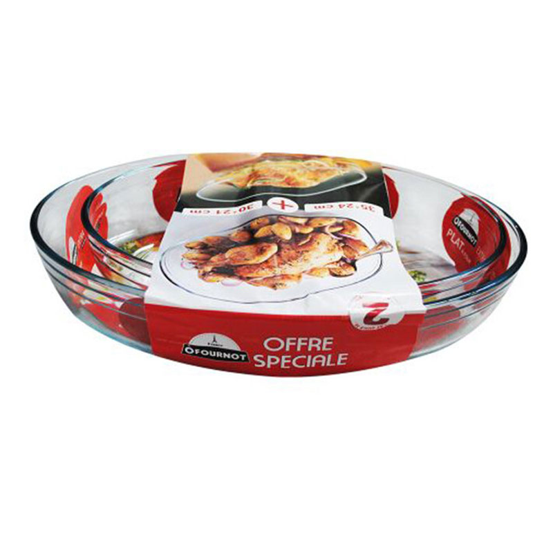 LOT 1 PLAT OVALE : 30 x 21 CM + 1 PLAT OVALE 35 x 24 CM - Matériau: Verre - Supporte des températures extrêmes de - 40°C à +250°C - Résistant aux chocs thermiques et aux rayures - Matériau sain sans BPA et hygiénique qui ne retient ni les tâches ni les odeurs - Bonne prise en main lors de la sortie du four. Livraison Gratuite à partir de 300DT d'Achat