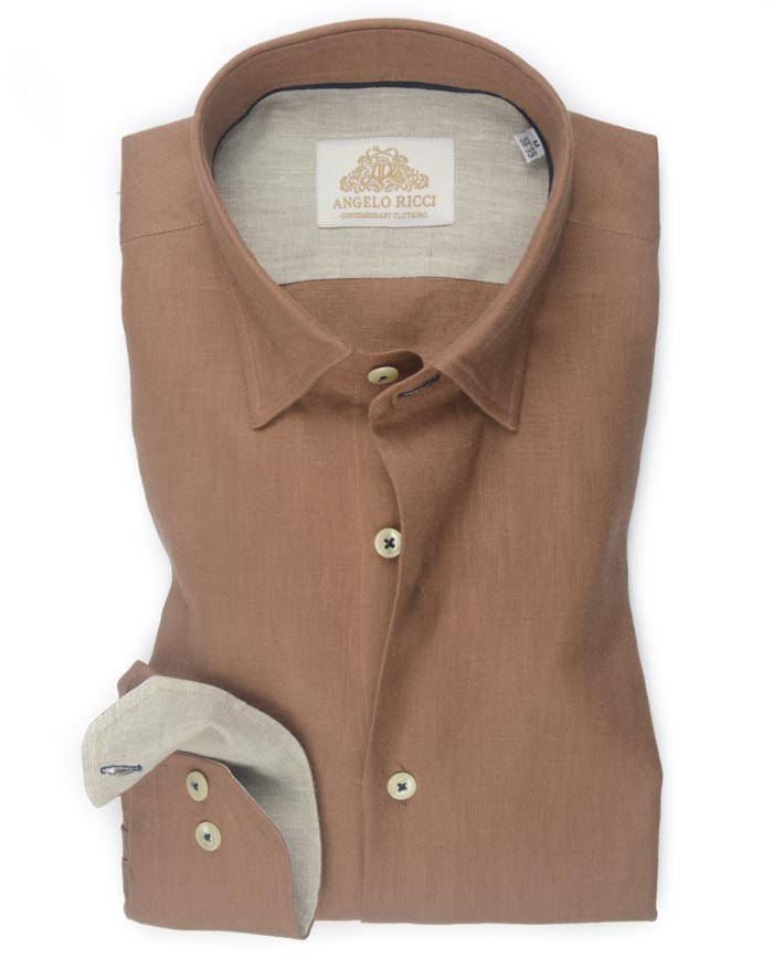 Angelo Ricci – chemise en Lin -Marron