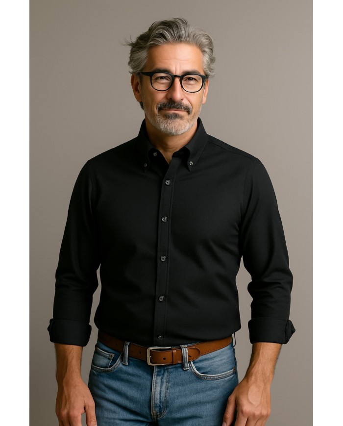 Angelo Ricci -Chemise Homme Angelo Ricci Regular Fit en Oxford Uni – Noir