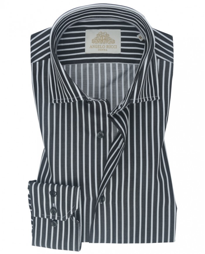 Angelo Ricci – Chemise Homme en Coton italien, coupe regular fit – Noir Rayé