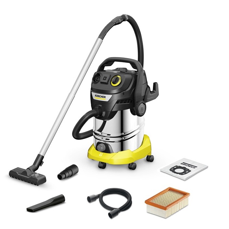 Aspirateur Eau Et Poussière KÄRCHER KWD 6 P S V - Puissance: 1300 Watts - Cuve en acier inoxydable de capacité du Réservoir: 30 Litres - Flexible d'aspiration de 2.2 mètres , un tubes d'aspiration de 0.5 mètres - Poignée amovible avec protection électrostatique - Fonction de nettoyage du filtre - Suceur eau/poussières: Commutable - Suceur fentes - Sacs filtrants en non-tissé - Matériaux tubes d'aspiration: Acier inoxydable - Interrupteur (marche/arrêt) - Adaptateur pour le raccordement d'outils électriques - Dimensions: L × l × H: 418 x 382 x 693 mm - Couleur: Noir et Jaune - Garantie: 1an Retrait en Magasin ou Livraison Gratuite * * Livraison Gratuite Pour 1 seul colis ≤ 30 Kg