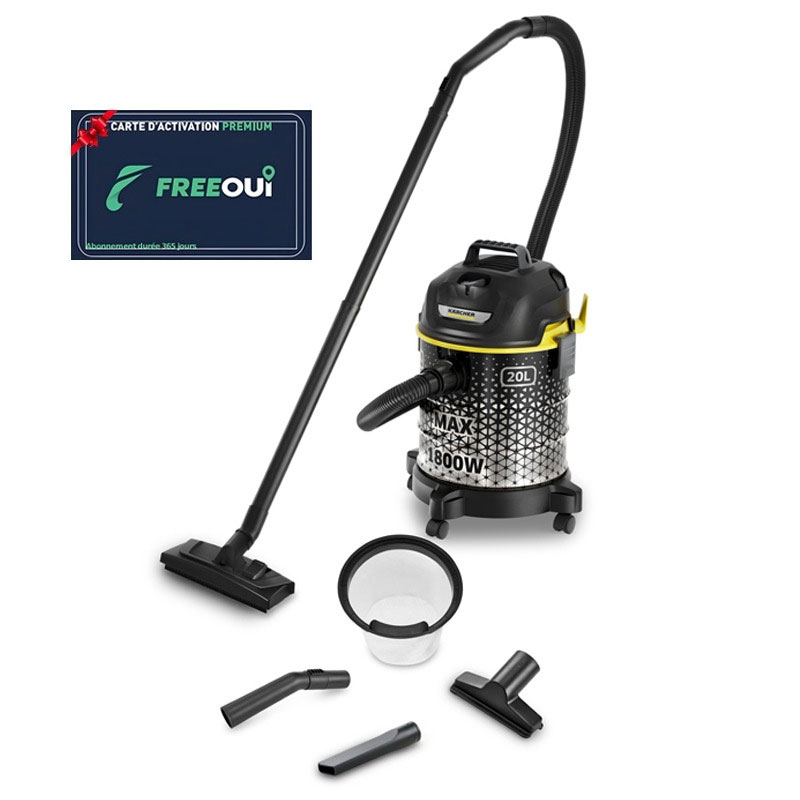 Aspirateur Poussière KÄRCHER DVAC - Puissance: 1800 Watts - Capacité du Réservoir: 20 Litres - Rayon d'action: 9m - Tuyau d'aspiration de 2 mètres - Matériau des tubes d'aspiration: Plastique - Fonction de soufflage pratique - Buse de sol - Buse pour crevasses - Buse pour rembourrage - Poignée amovible avec régulateur de débit d'air - L'appareil est facile et pratique à transporter - Accessoires multifonctionnels - Câble d’alimentation: 7 mètres - Alimentation: 220 - 240V / 50 - 60Hz - Dimensions: H x L x P: 537 x 401 x 401 mm - Couleur: Noir - Garantie: 1an + Carte FreeOui Retrait en Magasin ou Livraison Gratuite * * Livraison Gratuite Pour 1 seul colis ≤ 30 Kg