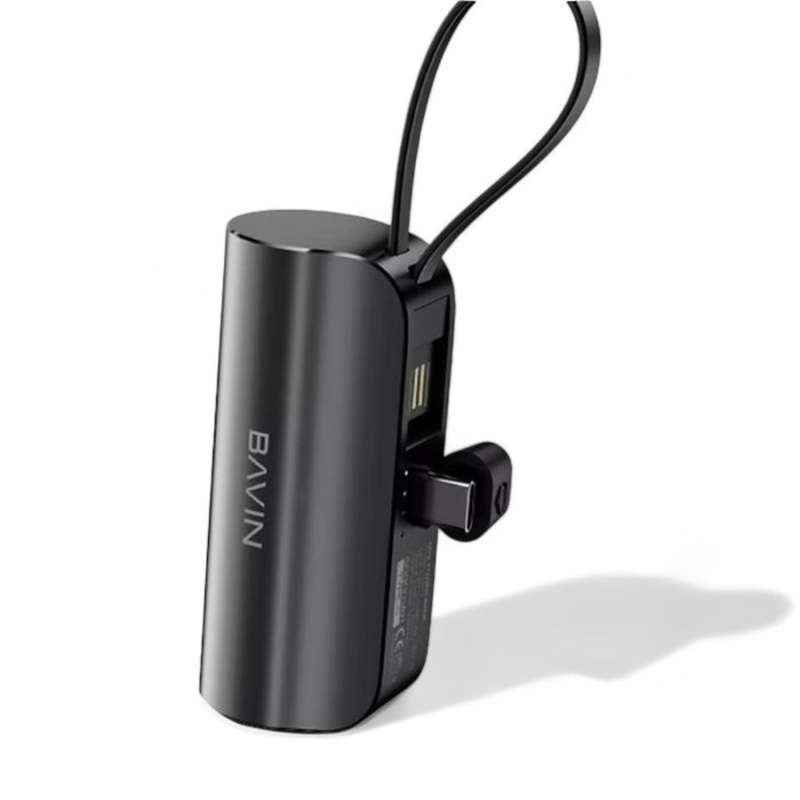 BAVIN – Mini Power Bank 5000mAh Charge Rapide – Port Lightning et câble USB intégré & Support Noir — à partir de 0,688 DT | Hawwini | Hawwini