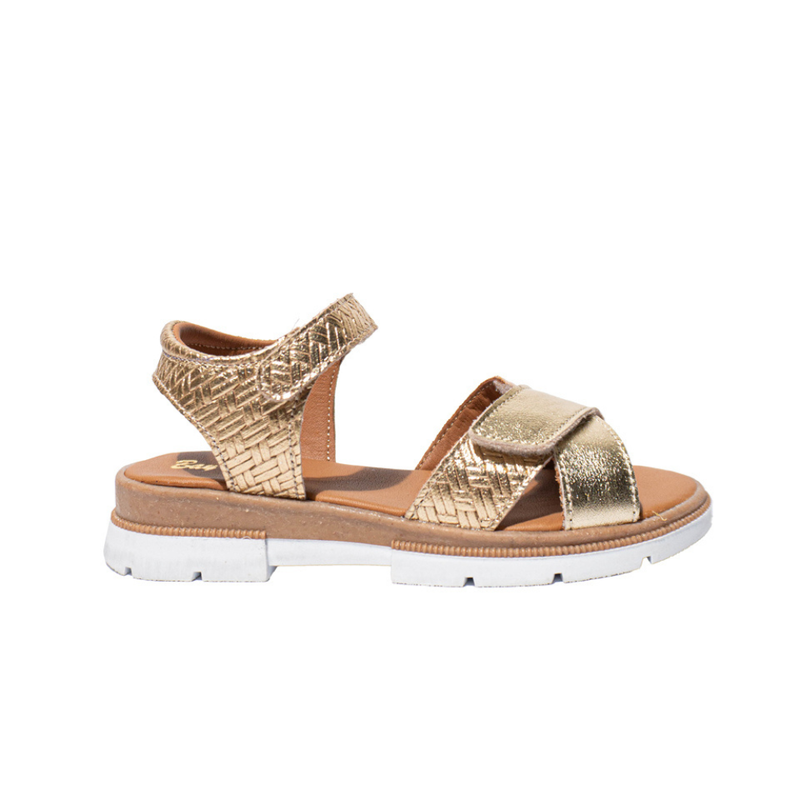 Sandales pour fille en cuir doré avec fermeture à scratch