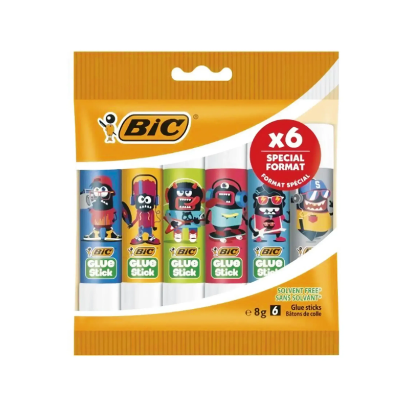 BIC – Bâtons de colle BIC ECOlutions décorés – 8 g – Pochette de 6 — à partir de 0,177 DT | Hawwini | Hawwini