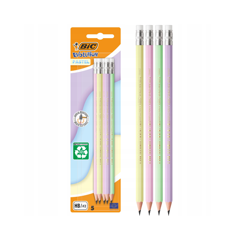 BIC – BIC Evolution Pastel Crayons graphite avec bout gomme et mine HB résistante – Lot de 5 — à partir de 0,070 DT | Hawwini | Hawwini