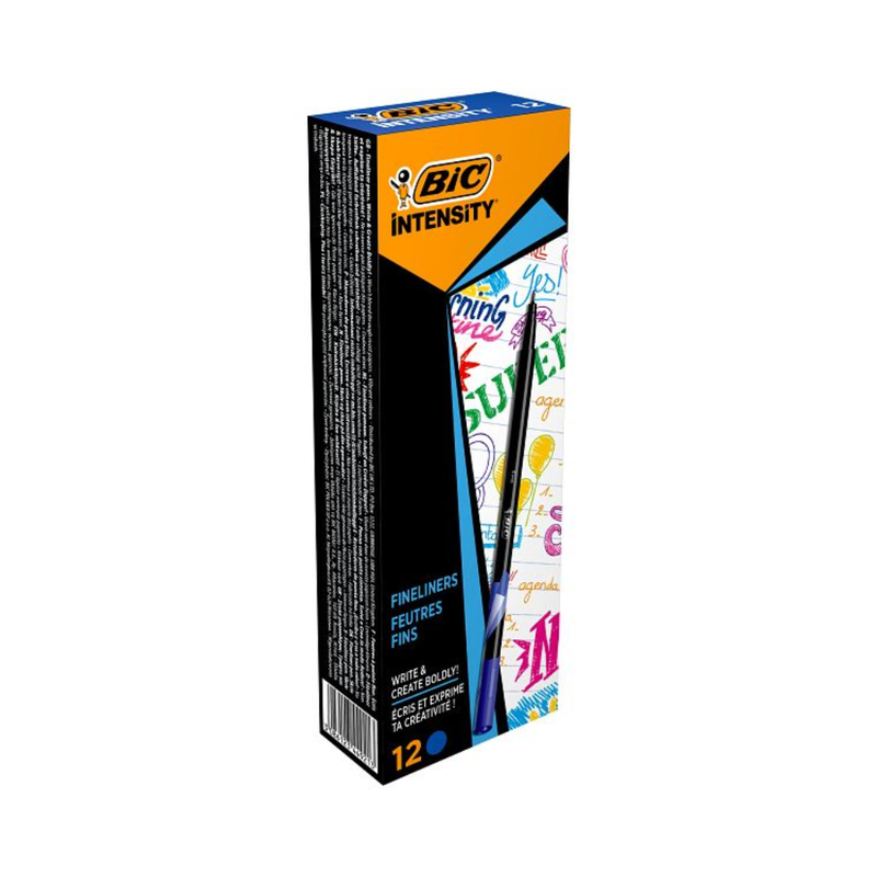 BIC – BIC Intensity Stylo Feutre d’écriture Pointe Fine – Bleu foncé, Boîte de 12