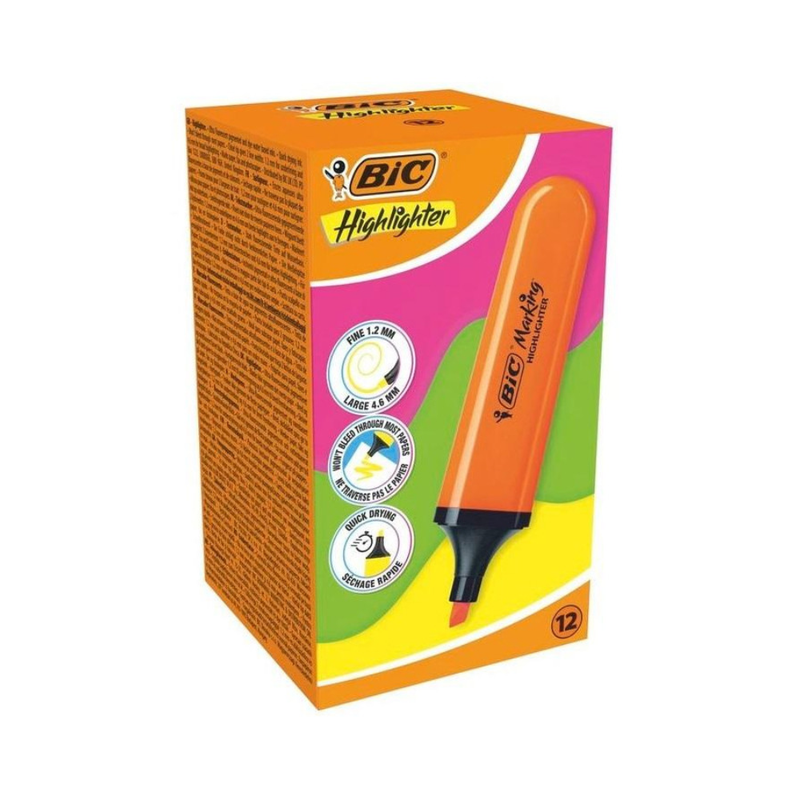 BIC – BIC Marking Flat Surligneurs avec Pointe Biseautée Modulable – Orange Fluo, Pack de 12 — à partir de 0,268 DT | Hawwini | Hawwini
