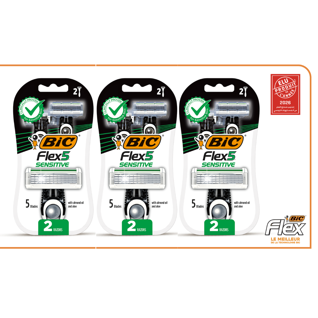 Ca pack contient: BIC Flex 5 Sensitive Rasoirs Non-rechargeables Masculins avec Tête Pivotante et Bande Lubrifiante – Blister de 3 BIC Flex 5 Sensitive Rasoirs Non-rechargeables Masculins avec Tête Pivotante et Bande Lubrifiante – Blister de 3 BIC Flex 5 Sensitive Rasoirs Non-rechargeables Masculins avec Tête Pivotante et Bande Lubrifiante – Blister de 3 à 50%