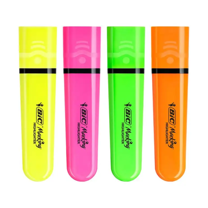BIC – Surligneurs BIC Marking Flat Néon – Pochette de 4 couleurs — à partir de 0,142 DT | Hawwini | Hawwini