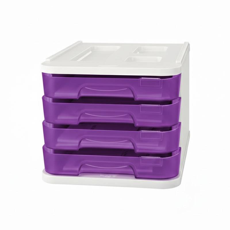 Bloc 4 Tiroirs Faibo Transparent Avec Porte‐Étiquette - Violet