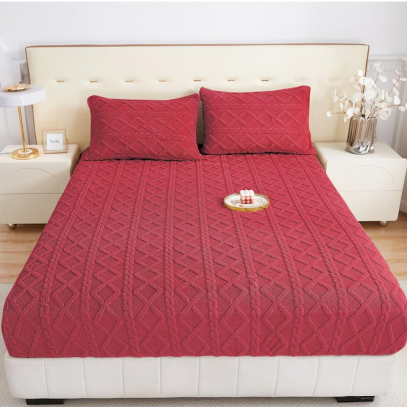 CASA NOVA – Draps housse polaire 200x160cm 3 pièces à rayures Bordeaux — à partir de 0,549 DT | Hawwini | Hawwini