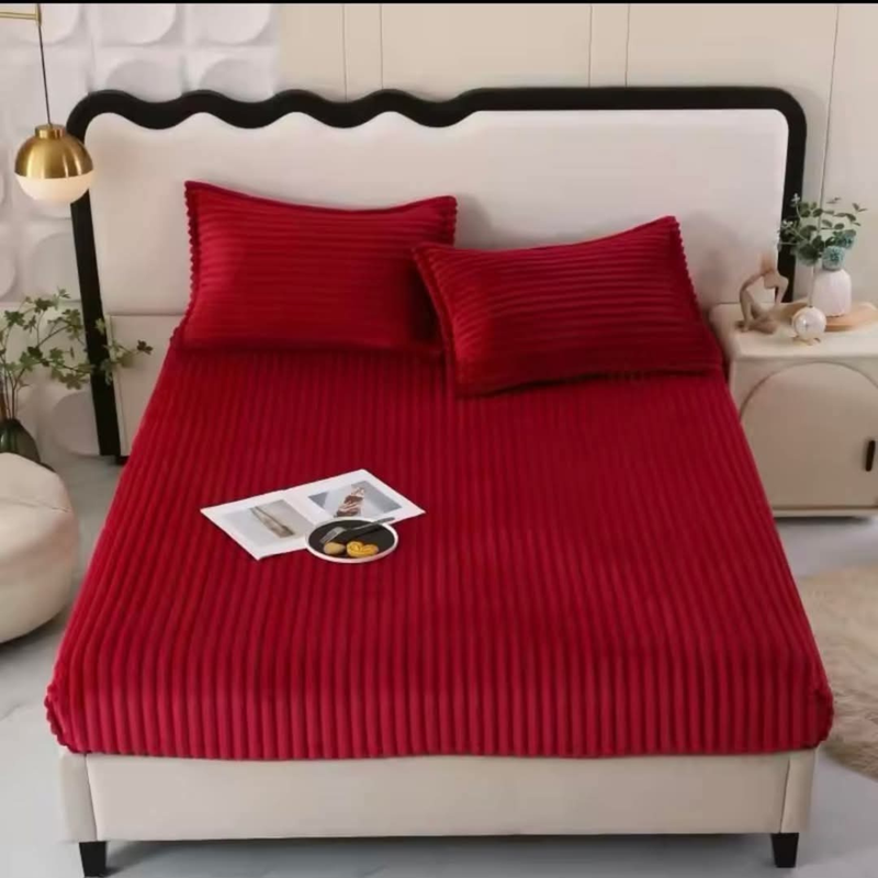 CASA NOVA – Draps housse polaire 3 pièces à rayures 200x160cm Bordeaux — à partir de 0,549 DT | Hawwini | Hawwini