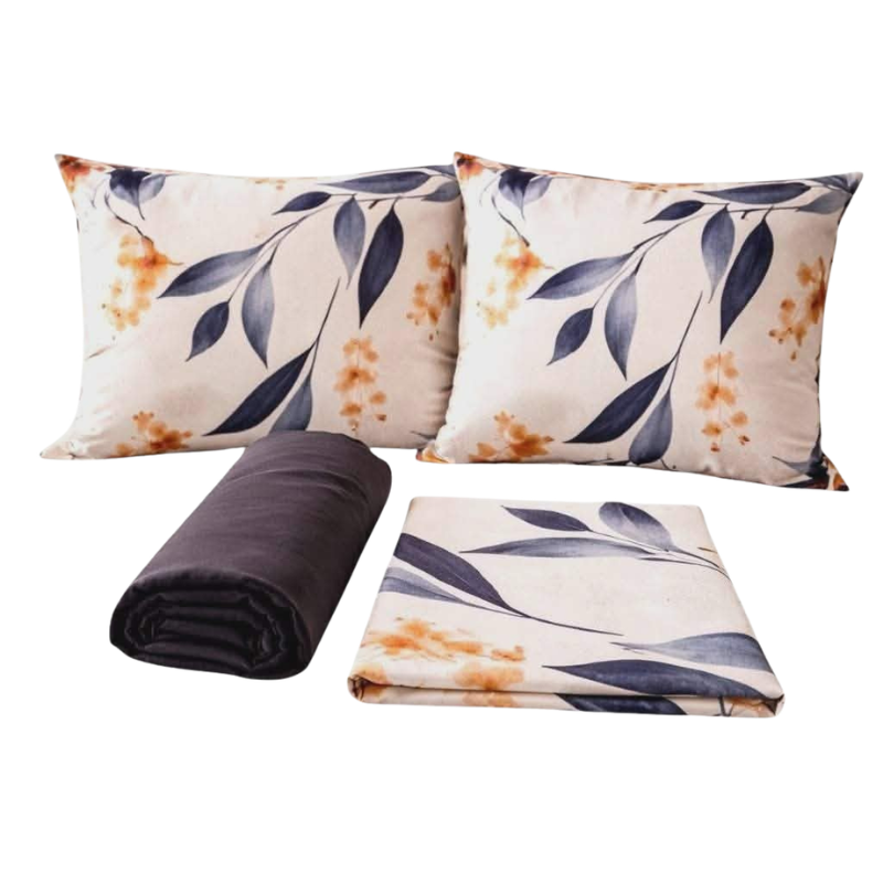 CASA NOVA – Parure de lit 4 pièces Feuilles Bleu Marine – Prix Tunisie dès 0,490 DT | Hawwini