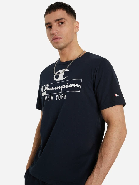 Champion -T-shirt en coton Champion avec imprimé – Bleu foncé — à partir de 0,820 DT | Hawwini | Hawwini