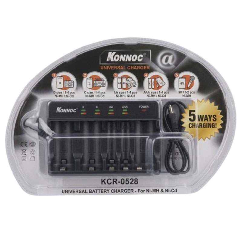 Chargeur De Piles KONNOC KCR-0528 Universel AA AAA C D 9V avec Minuterie — à partir de 89,000 DT | Hawwini | Hawwini