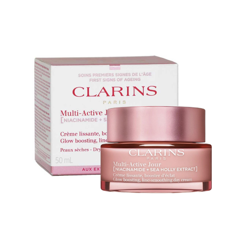 La Crème Éclat Multi-Active Jour Peaux Sèches de Clarins est une crème hydratante de jour spécialement formulée pour les peaux sèches. Grâce à une combinaison d’actifs, cette crème offre une hydratation intense et durable tout en contribuant à atténuer l’apparence des ridules et des signes de fatigue, pour une peau visiblement plus éclatante et lumineuse.
