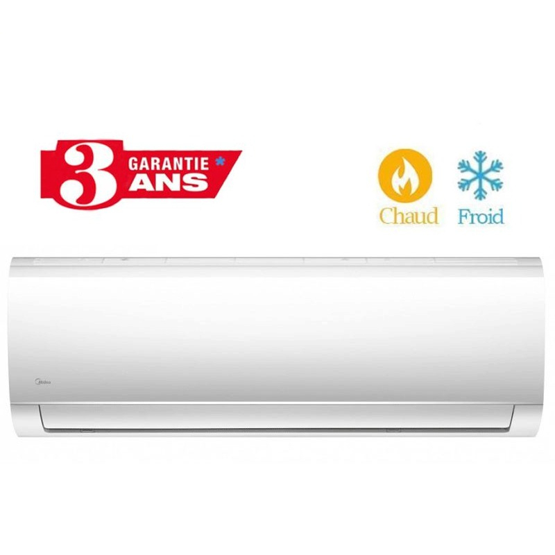 Climatiseur MIDEA - Mode: Chaud & Froid - Capacité: 24000 BTU - Gaz R410A écologique - Superficie conseillée: 50-70 m² - Design élégant et moderne - Fonction Sommeil - Flux d'air intelligent - Redémarrage automatique - Protection contre la corrosion (Golden Fin) - Couleur : Blanc - Garantie : 3 ans - Garantie Mouteur Climatiseur : 10 ans . Retrait en Magasin ou Livraison Gratuite * * Livraison Gratuite Pour 1 seul colis ≤ 30 Kg