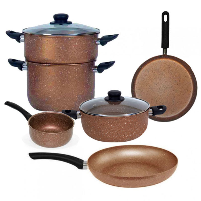 Pack COOK'ART - Couscoussier : Capacité: 6 litres + Poêle : Diamètre: 24 cm + Faitout avec couvercle : Diamètre: 24 cm + Crêpière : Diamètre: 25 cm + Casserole : Diamètre: 18 cm - Matériau: Granite - Moucheté en blanc - Poignées & bouton couvercle résistantes à la chaleur - Revêtement anti-adhésif - Cuisson saine - Facile à nettoyer - Durable et léger - Couleur: Marron Livraison Gratuite à partir de 300DT d'Achat