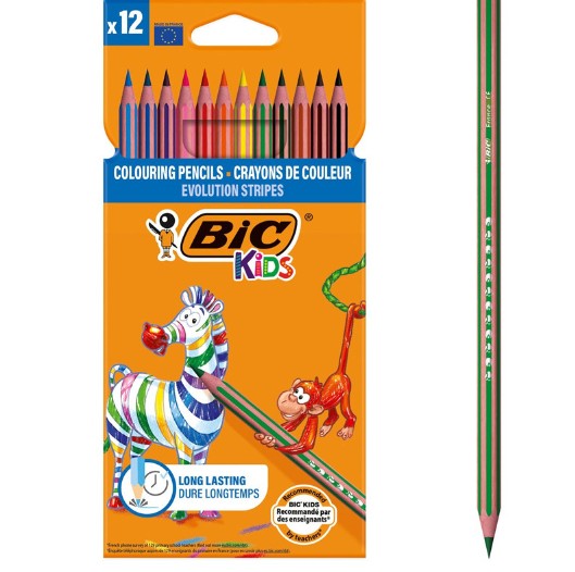 Crayons de 12 couleurs BIC stripes – Prix Tunisie dès 7,395 DT | Hawwini