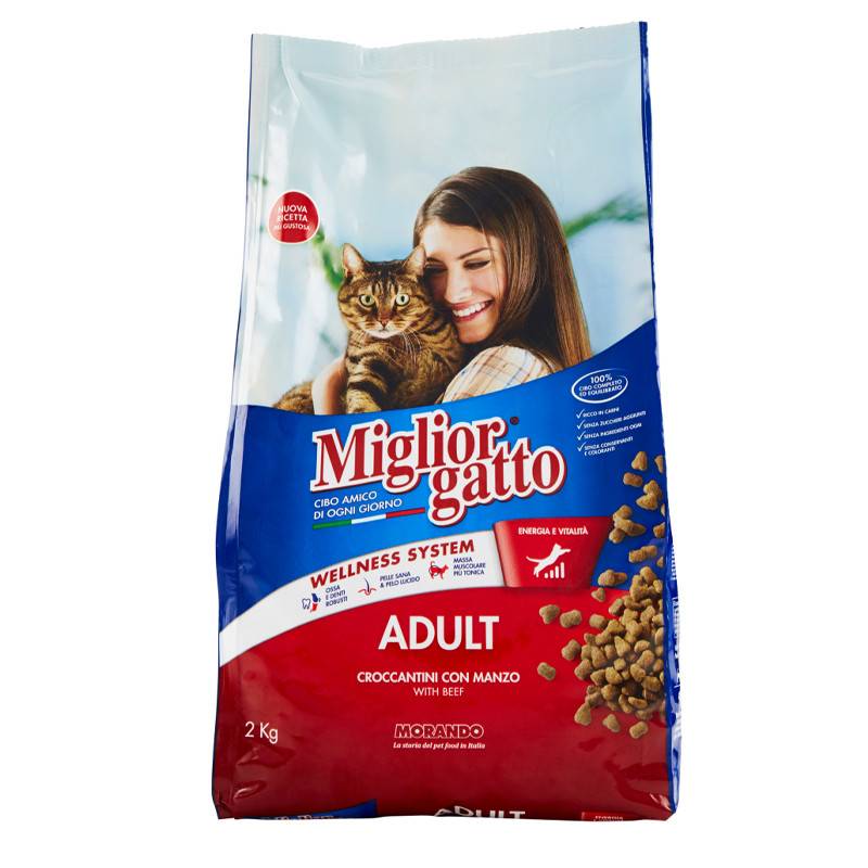 Croquettes pour chats MIGLIOR GATTO Adult BĆuf - Contenance : 2 kg - Viande et dĂ©rivĂ©s 42% (bĆuf 4%) - Huiles et graisses - Aliment complet et Ă©quilibrĂ© pour chats adultes - Recette au bĆuf pour une alimentation savoureuse et adaptĂ©e aux besoins quotidiens - Apport en protĂ©ines de qualitĂ© pour soutenir la masse musculaire - Contient des vitamines et minĂ©raux essentiels pour favoriser la vitalitĂ© et le bien-ĂȘtre gĂ©nĂ©ral - Format Ă©conomique idĂ©al pour une utilisation rĂ©guliĂšre - Convient Ă une alimentation quotidienne simple et Ă©quilibrĂ©e - Contribue au maintien dâun chat actif, en bonne santĂ© et avec un pelage soignĂ© Livraison Gratuite Ă partir de 300DT d'Achat