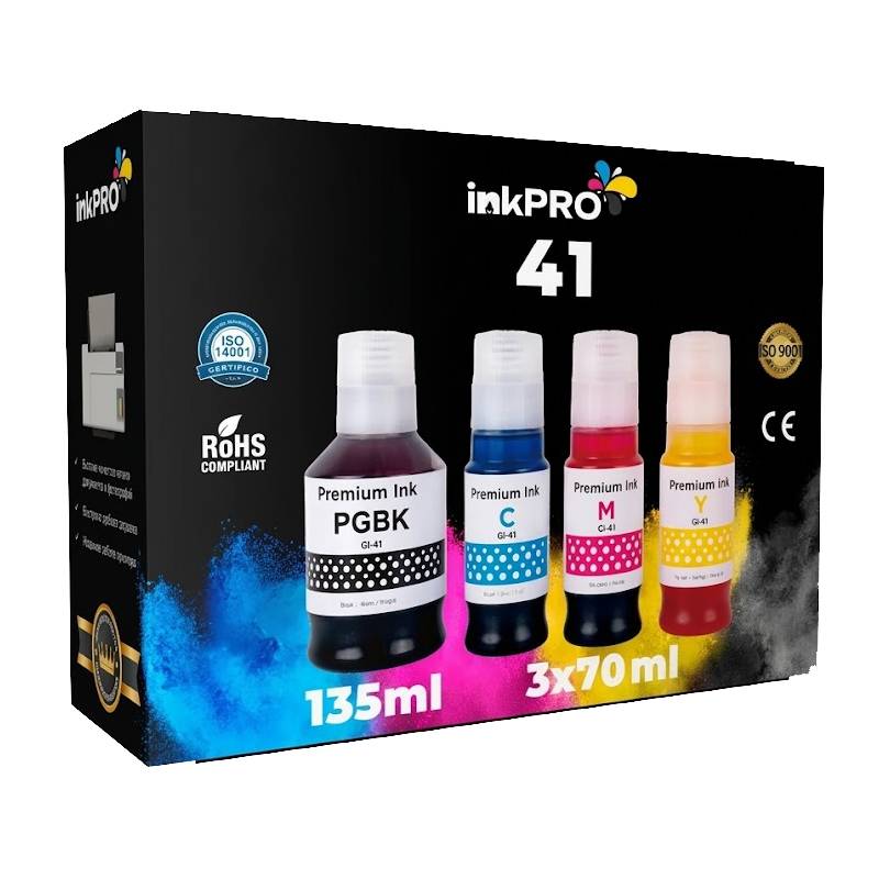 Pack de 4 Couleurs Adaptable PACKGI-41 - Le kit se compose de 4 bouteilles d'encre : 1 bouteille Noir de Contenance de 135 ml - bouteilles de couleur (Cyan, Magenta, Jaune) : Contenance de 70 ml chacune. Livraison Gratuite Ă partir de 300DT d'Achat