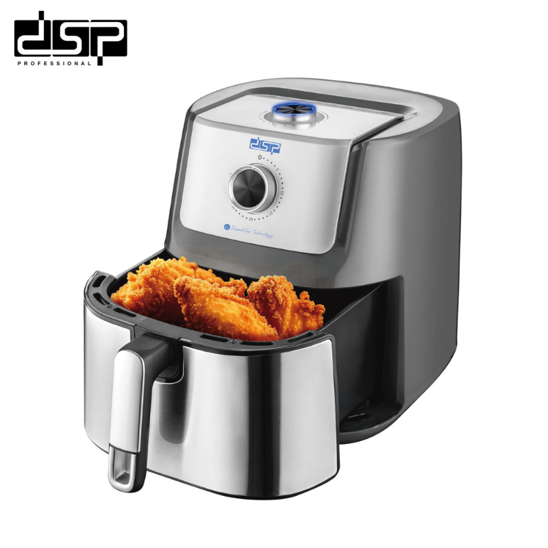Marque : DSP Type de produit : Friteuse à air chaud Puissance : 1600 W Capacité : 6,5 Litres Température réglable : 80 °C à 200 °C Technologie de cuisson : Circulation d’air chaud 360° Commande : Réglage manuel de la température Revêtement du panier : Antiadhésif Alimentation : 220–240 V Fréquence : 50–60 Hz Utilisation : Domestique Nettoyage : Facile