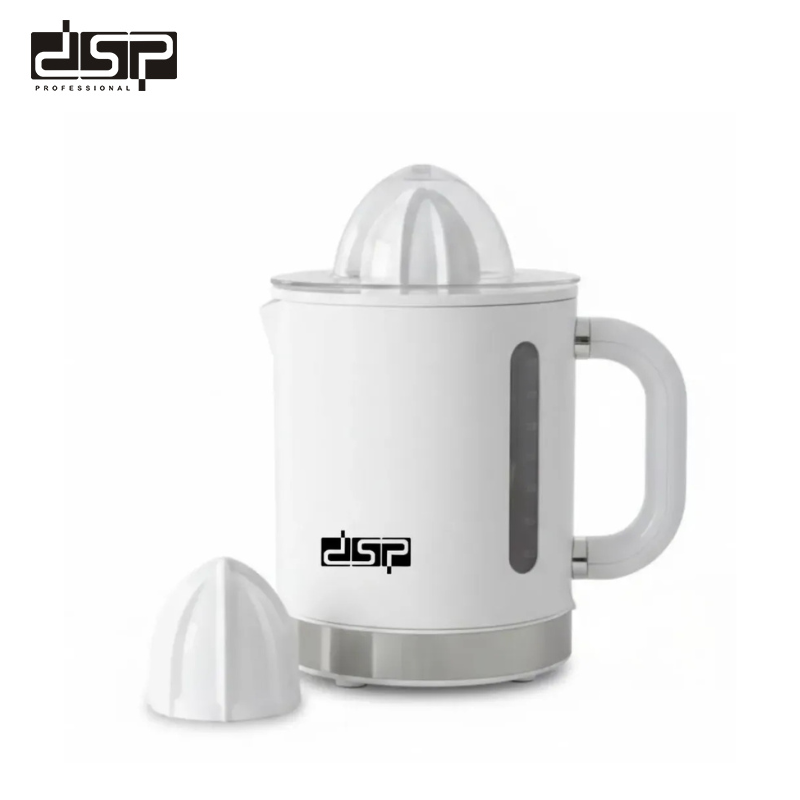 Marque : DSP Puissance : 40 W Capacité : 1,4 Litres Fonctionnement : Rotation automatique par pression Matériau : ABS alimentaire résistant Alimentation : Secteur Compatible avec : Oranges, citrons, mandarines, pamplemousses Entretien : Pièces démontables, nettoyage facile