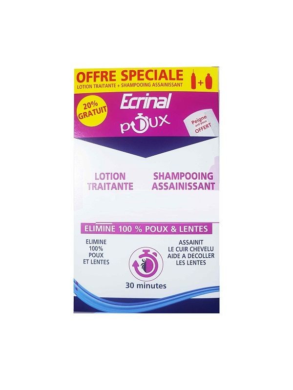 ECRINAL PACK ANTI POUX LOTION+SHAMPOOING (PEIGNE OFFERT) Découvrez l'efficacité du pack Ecrinal anti poux , une solution complète pour lutter contre les infestations de poux. Ce pack comprend une lotion et un shampooing spécifiquement formulés pour éliminer les poux et leurs lentes, tout en préservant la santé de vos cheveux. Grâce à son action ciblée, la lotion pénètre en profondeur, garantissant une élimination rapide et efficace des parasites. Le shampooing, quant à lui, nettoie en douceur tout en apportant brillance et vitalité à vos cheveux. En bonus, un peigne est offert pour faciliter le retrait des lentes et des poux, rendant le processus encore plus simple et efficace. Avec le pack Ecrinal, vous bénéficiez d'une solution pratique et complète pour dire adieu aux poux. Profitez d'une tranquillité d'esprit et d'une chevelure saine grâce à cette combinaison gagnante. Ne laissez pas les poux perturber votre quotidien, optez pour le pack Ecrinal et retrouvez des cheveux éclatants de santé.