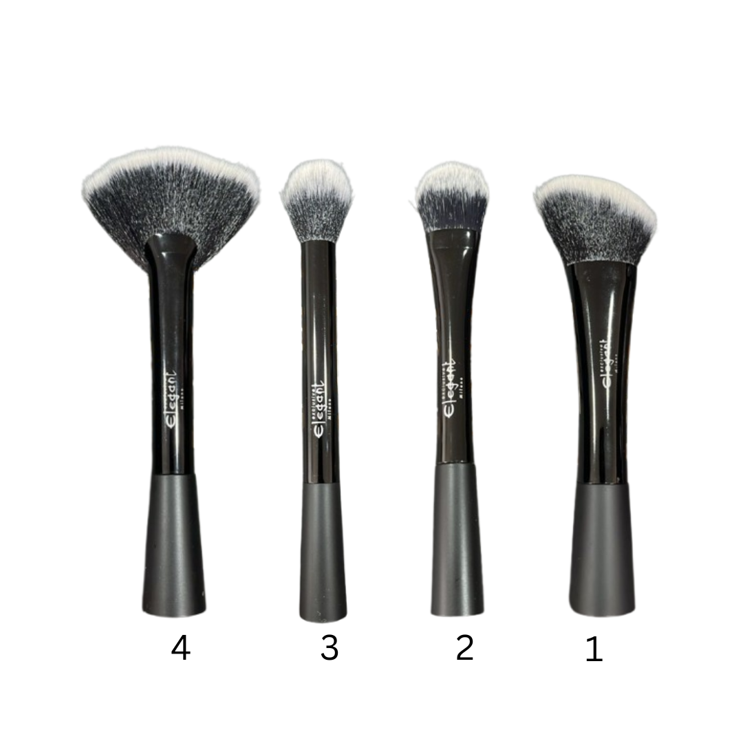 Ce Pack Elegant Contient 4 pinceaux en crin de cheval naturel : Blusher brush ( Pour appliquer le fard a joues) Foundation brush ( Pour appliquer le fond de teint) Highlighter Brush ( Pour appliquer le highlighter ) Fun brush (Pour estomper la poudre ou parfaire le teint)