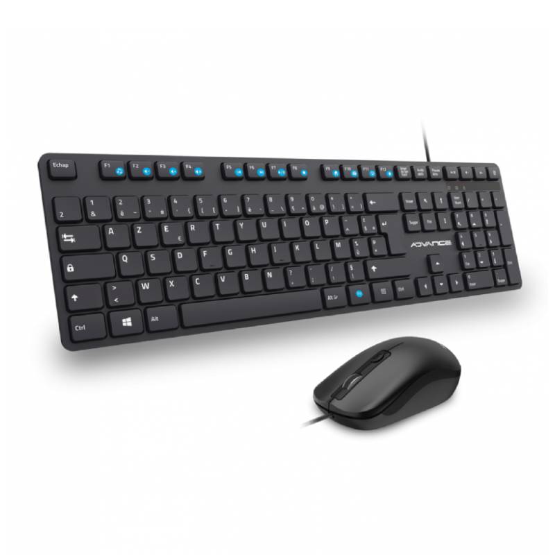 Ensemble Clavier et Souris ADVANCE CLS-5100 - Technologie de connectivité: Filaire - Interface: USB - Clavier : Norme: AZERTY - Nombre De Clés: 105 Touches - 4 touches spéciales - 12 Raccourcis Multimédia - Type de touches: Chocolat Silencieuses - Souris : Résolution: 2400 DPI - Type de souris: Optique - Nombre de boutons: 3 Boutons - Clics souris silencieux - Couleur: Noir - Garantie: 1an Livraison Gratuite à partir de 300DT d'Achat