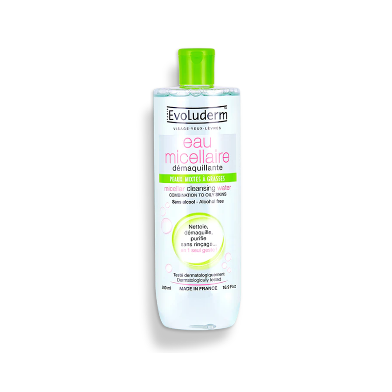Evoluderm – Eau Micellaire Démaquillante Peaux Mixtes À Grasses 500Ml — à partir de 0,240 DT | Hawwini | Hawwini