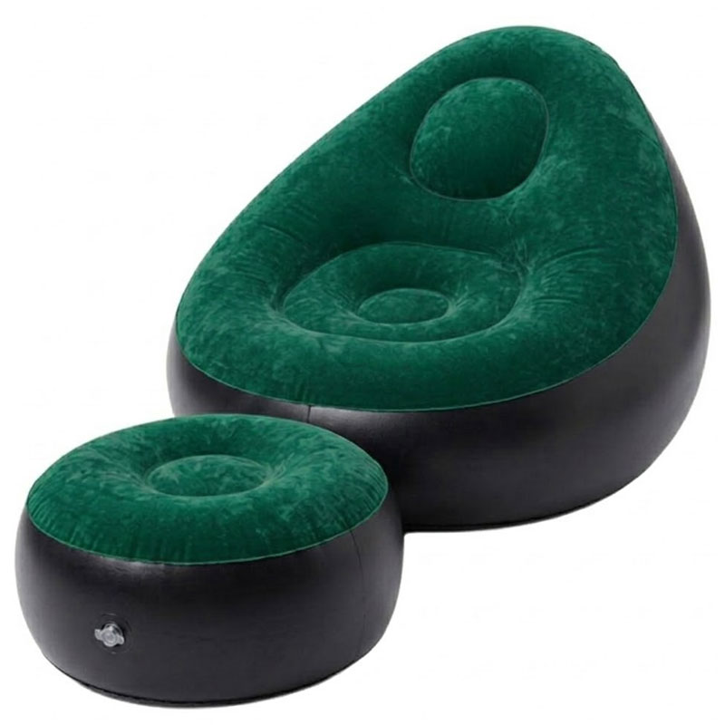 Fauteuil Gonflable Intex avec pouf - Set de détente gonflable est la solution idéale pour créer un coin lecture, gaming ou relaxation en un clin d'œil - Matériau Vinyle haute résistance avec surface floquée (suédine) - Capacité de Charge Jusqu'à 100 kg - valve 2-en-1 à ouverture extra-large pour gonflage/dégonflage rapide - Usage Intérieur (Salon, chambre, bureau) - Couleur Vert Livraison Gratuite à partir de 300DT d'Achat