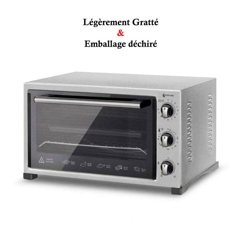 Four Électrique STARONE - Volume: 36 Litres - Puissance: 1420 Watts - Chaleur Tournante - Température: Réglable - Minuterie: Mécanique - Façade en métal - Dimensions: H x L x P: 51 x 40 x 31 cm - Couleur: Silver - Garantie: 1an NB: Légèrement Gratté Disponible uniquement dans notre magasin Charguia Livraison Gratuite à partir de 300DT d'Achat