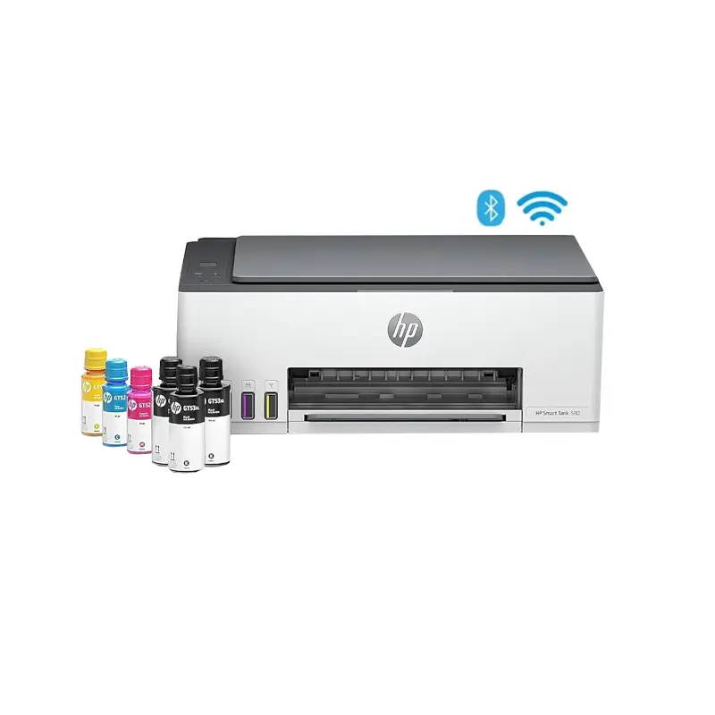 Imprimante HP Smart Tank 580 3en1 : Fonctions : Imprimer, copier & numĂ©riser Technologie dâimpression : Jet dâencre thermique Format Papier : A4 Vitesse dâimpression : JusquâĂ 22ppm (Noir) â JusquâĂ 16 ppm (Couleur) RĂ©solution de NumĂ©risation : AmĂ©liorĂ©e : JusquâĂ 1200 ppp â Optique : JusquâĂ 1200 ppp Impression recto/verso : Manuel Cycle dâutilisation (mensuel, A4): JusquâĂ 3000 pages ConnectivitĂ© : 1 USB 2.0 haut dĂ©bit (appareil) â 1 Bluetooth â 1 Wi-Fi 802.11b/g/n â 1 Wi-Fi Direct Dimensions : 434,66 Ă 361,53 Ă 157,26 mm Garantie : 1 an â„ â©Avec 6 Bouteilles Dâencre incluses : 135 ml x3(noir) , 50 ml x3 (couleur) âȘ cliquez ici â Extension de garantie 3 ans