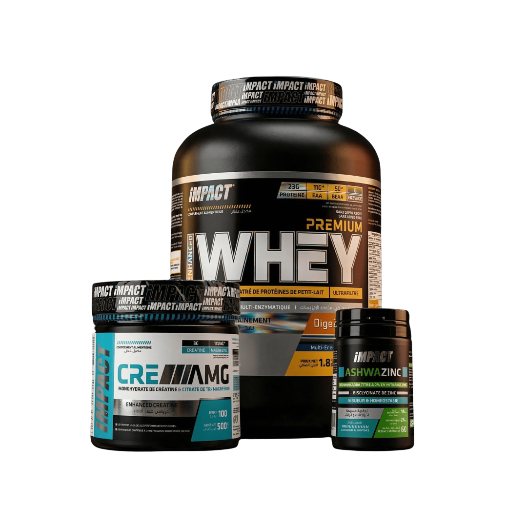Ce pack contient : Premium Whey ENHANCED â 1.890kg / Pot / Double Chocolate CreAMG â 500g AshwaZinc â 60 GĂ©lules