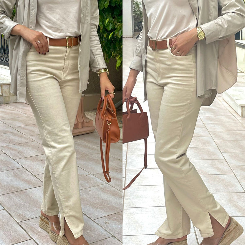 Jeanz – Jean straight avec fente – Ecru