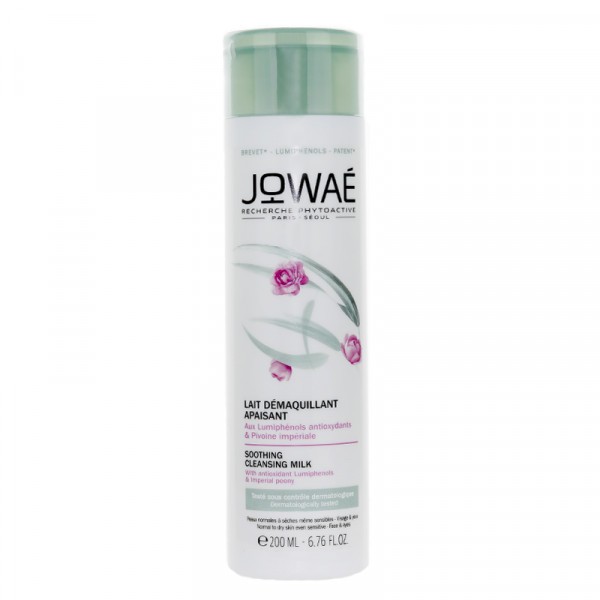Découvrez le JOWAE LAIT DEMAQUILLANT APAISANT 200ML , un soin démaquillant révolutionnaire qui allie efficacité et douceur. Formulé à base d'ingrédients naturels, ce lait démaquillant nettoie en profondeur tout en apaisant les peaux sensibles. Sa texture légère et crémeuse glisse sur la peau, éliminant facilement le maquillage, même waterproof, sans agresser l'épiderme. Grâce à ses propriétés hydratantes, il laisse la peau douce et confortable après chaque utilisation. Idéal pour un usage quotidien, le lait démaquillant JOWAE est un allié précieux pour les rituels de beauté. Enrichi en actifs apaisants, il réduit les sensations d'irritation et de tiraillement, offrant ainsi un véritable moment de bien-être. Faites confiance à JOWAE pour prendre soin de votre peau tout en préservant son équilibre naturel. Offrez à votre visage la douceur et la sérénité qu'il mérite avec ce lait démaquillant apaisant. Pratique et efficace, le format de 200ml vous garantit plusieurs utilisations pour un démaquillage agréable au quotidien. Composition : Eau, extrait de fleur de cerisier, extrait de lotus, glycérine, etc. Composition: Actifs : - Lumiphénols antioxydants - Pivoine impériale - Fleur de soleil - Jojoba - Glycérine végétale INGREDIENTS : AQUA/WATER/EAU. CAPRYLIC/CAPRIC TRIGLYCERIDE. POLYGLYCERYL-6 DISTEARATE. POLOXAMER 184. PROPANEDIOL. CETEARYL ALCOHOL. GLYCERIN. ETHYLHEXYL STEARATE. ISOSTEARYL ISOSTEARATE. JOJOBA ESTERS. CHLORPHENESIN. PARFUM/FRAGRANCE. SODIUM BENZOATE. ETHYLHEXYLGLYCERIN. XANTHAN GUM. CETYL ALCOHOL. POLYGLYCERYL-3 BEESWAX. TOCOPHEROL. HELIANTHUS ANNUUS (SUNFLOWER) SEED OIL. CITRIC ACID. SEMPERVIVUM TECTORUM EXTRACT. PAEONIA OFFICINALIS FLOWER EXTRACT. SODIUM HYDROXIDE.