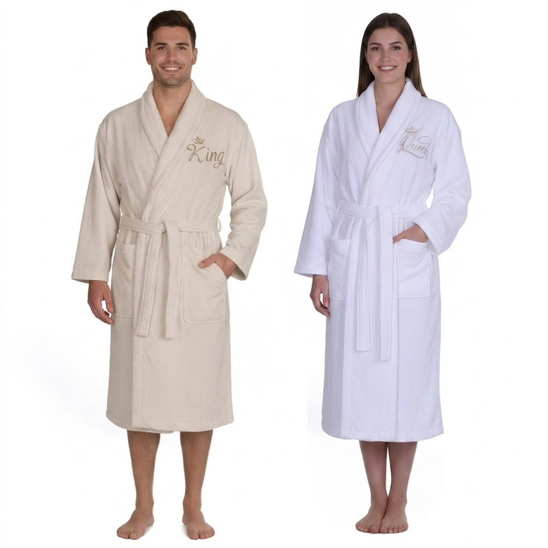 Kenza – Pack Peignoirs 4 Pcs Brodés “King & Queen” 100% Coton – Grége et Blanc – Prix Tunisie dès 3,390 DT | Hawwini
