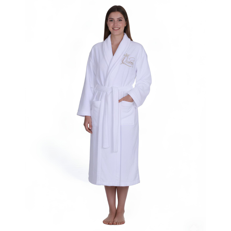 Kenza – Peignoir pour Femme Brodé “Queen” 100% Coton – Blanc — à partir de 1,800 DT | Hawwini | Hawwini