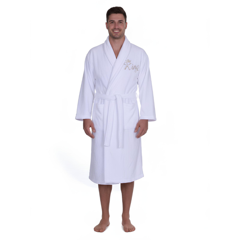 Kenza – Peignoir Pour Homme Brodé “King” 100% Coton – Blanc — à partir de 1,800 DT | Hawwini | Hawwini