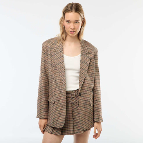 Kiabi – Blazer imprimé pied de poule MARRON