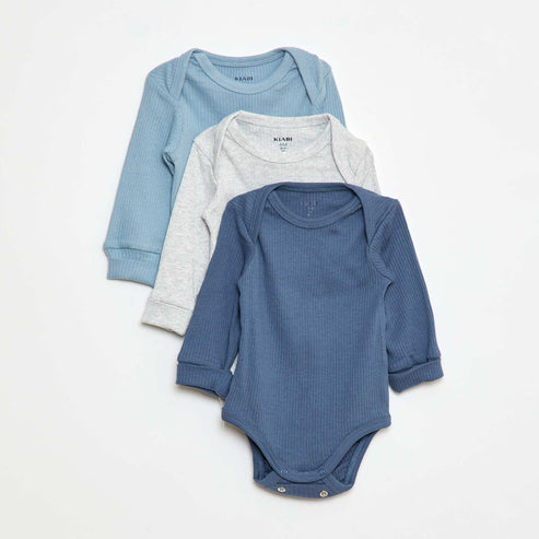 Kiabi – Lot de 3 bodies col US et manches longues BLEU — à partir de 0,490 DT | Hawwini | Hawwini