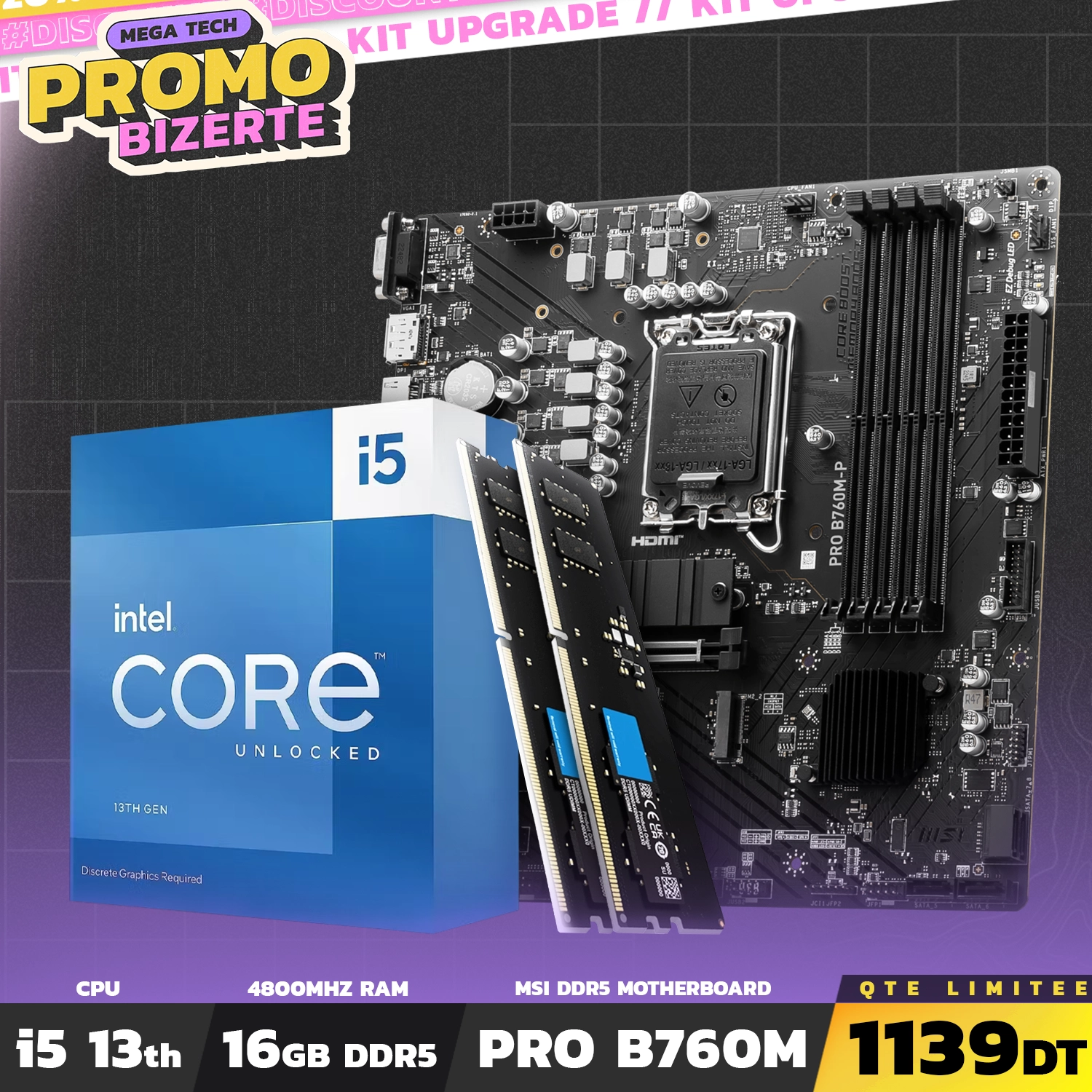 Kit Upgrade 28 | PRO B760M-P DDR5 + Intel Core i5-13400F + RAM DDR5 16GB 4800Mhz | Bizerte — à partir de 1 139,000 DT | Hawwini | Hawwini