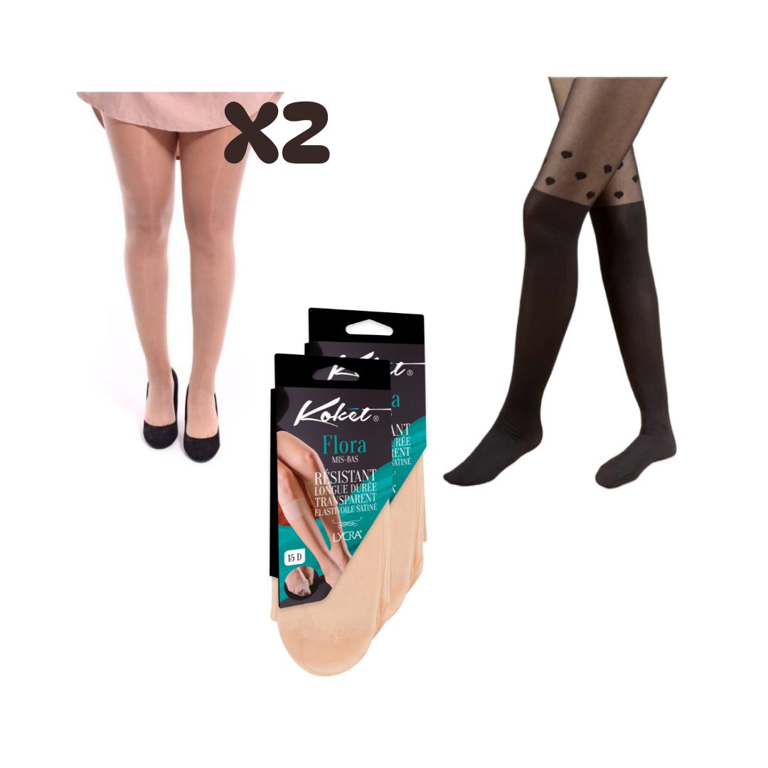 KOKET – Pack koket printemps 2 Collant Flora T4 , 2 Mi-Bas Flora et 1 Collant Carina T2